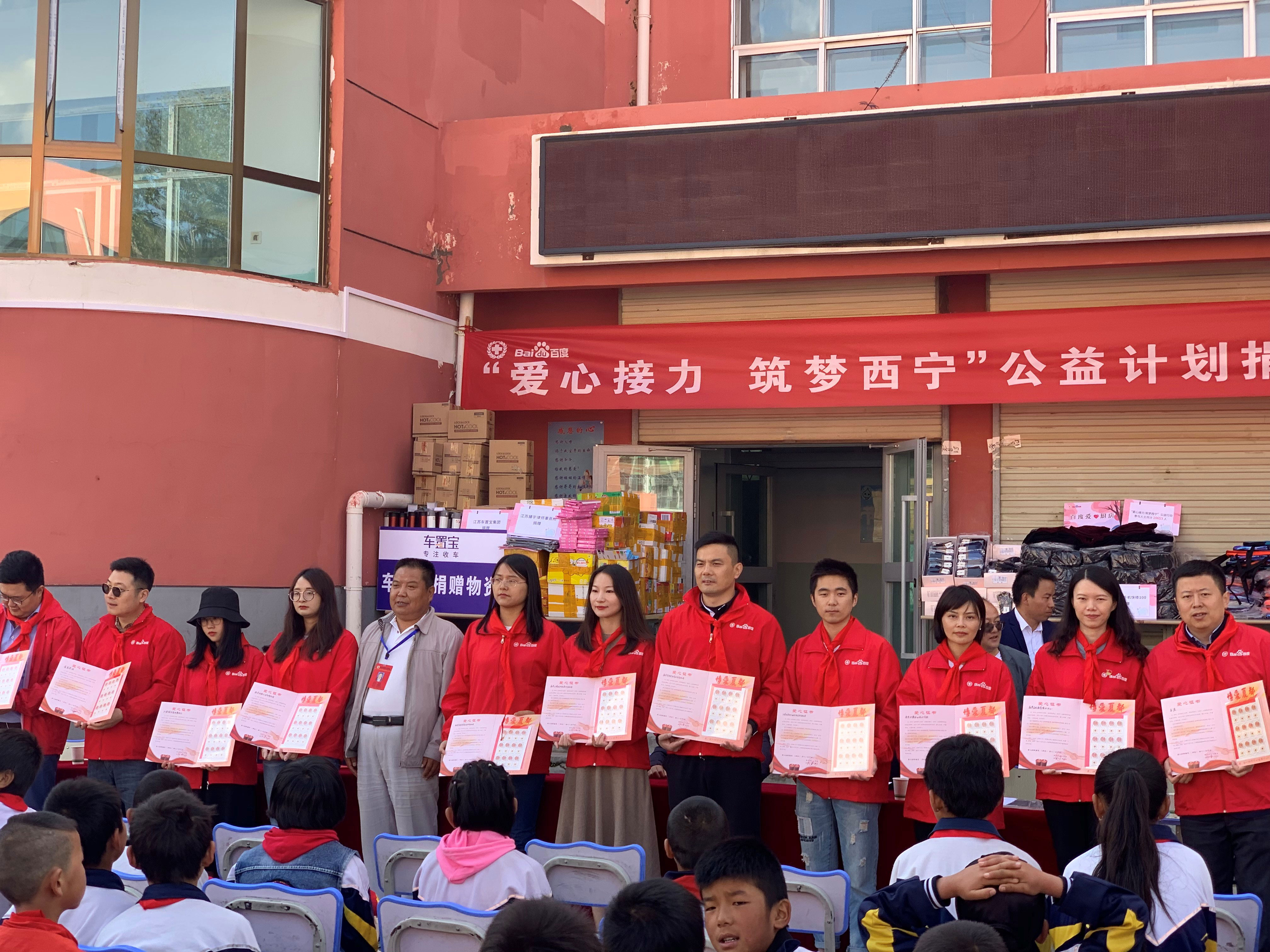 8月31日上午,“百度愛心廚房”公益計劃第二期活動在青海省西寧市樺林鄉(xiāng)希望完全小學(xué)正式啟動。本次活動由樺林鄉(xiāng)中心學(xué)校黨支部書記馬偉云主持,西寧市紅十字會黨組書記、常務(wù)副會長張生輝;西寧市紅十字會副會長李洪蘭;西寧市紅十字會救災(zāi)賑濟(jì)部部長馬占海;大通縣教育局黨組書記、局長包文生;大通縣教育局資助中心主任王生泰;大通縣紅十字會副會長趙成棟;大通縣紅十字會秘書長宋正元;大通縣樺林鄉(xiāng)黨委書記鄒永才;大通縣樺林鄉(xiāng)中心學(xué)校校長薛義成;百度營銷南京服務(wù)中心副總經(jīng)理余超以及南京眾愛心企業(yè)共同出席捐贈活動。