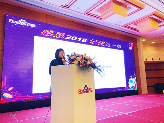 答謝會(huì)上,南京首屏高級(jí)講師孟玲女士進(jìn)行“感恩2018記住這一年”主題演講。為大家介紹百度AI技術(shù)的發(fā)展與普及,以及百度的新鮮產(chǎn)品和未來發(fā)展趨勢(shì)。